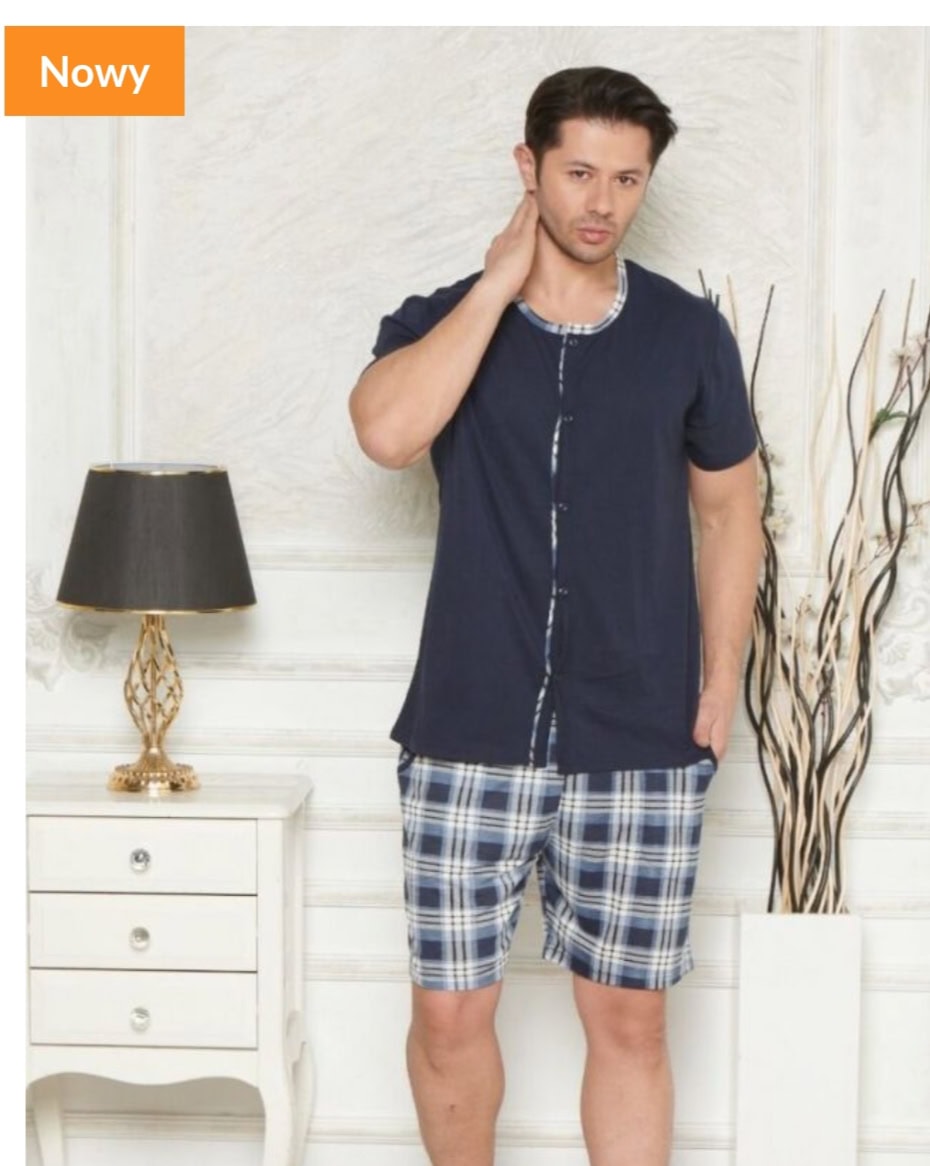 Piżamy z krótkim rękawem i krótkimi spodenkami z rozpinaną górą